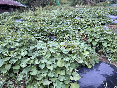 一方、さつまいもは雨が少ない中でもしっかり葉を伸ばして元気に育っています